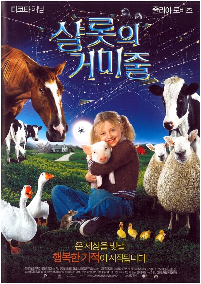 가족 친화적인 영화라는 매혹적인 세계에서, 시대를 초월한 고전인 "샬롯의 거미줄"만큼 세대를 넘어 관객을 사로잡은 이야기는 거의 없습니다. E.B. 를 기반으로 합니다. 화이트의 사랑을 받은 소설인 이 영화 같은 보석은 우정, 용기, 말의 특별한 힘을 태피스트리로 엮어냅니다. 이 마음 따뜻해지는 이야기의 복잡함을 파헤치면서 목가적인 Zuckerman의 농장으로 이동할 준비를 하세요. 그곳에서 Charlotte라는 이름의 빛나는 거미의 마법이 화면 너머로 울려 퍼지는 방식으로 펼쳐집니다. 샬롯의 거미줄은 E.B. 화이트의 매혹적인 세계. 게리 위닉(Gary Winick)이 감독한 이 영화는 생생한 색상과 그림 같은 매력으로 장식된 목가적 풍경에 관객을 몰입시킵니다. Zuckerman 농장의 황금빛 들판부터 그곳의 동물 주민들의 사랑스러운 표정까지, 모든 프레임은 고전 이야기에 생명을 불어넣으려는 영화 제작자의 헌신을 보여주는 증거입니다. 황금빛 심장을 지닌 특별한 거미 샬롯의 애니메이션은 시각적 스토리텔링의 승리입니다. 섬세하면서도 표현력이 풍부한 동작과 빛나는 아우라가 어우러져 화면을 초월한 캐릭터로 거듭나며 지혜와 친절의 등불이 되고 있다. 애니메이션의 디테일에 대한 관심은 사실성과 기발함의 완벽한 조화를 만들어내며 관객은 불신을 멈추고 돼지 윌버와 그의 특별한 친구의 매혹적인 세계를 완전히 받아들일 수 있습니다.