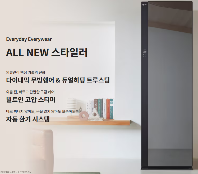 🔹 LG 스타일러 – 스팀과 무빙행어로 자연스러운 주름 제거
