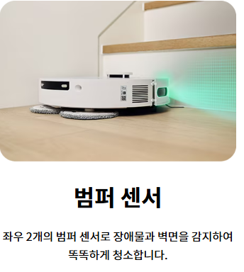 ✅ 한국형 AI 주행 기술로 문턱 등반, 장애물 회피, 카펫 감지 기능 제공