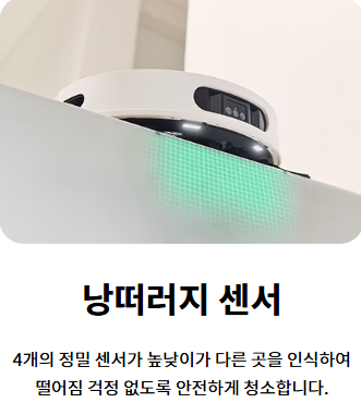 - RGB 카메라 & 3D 센서: 장애물을 감지하고 회피하여 원활한 청소 가능