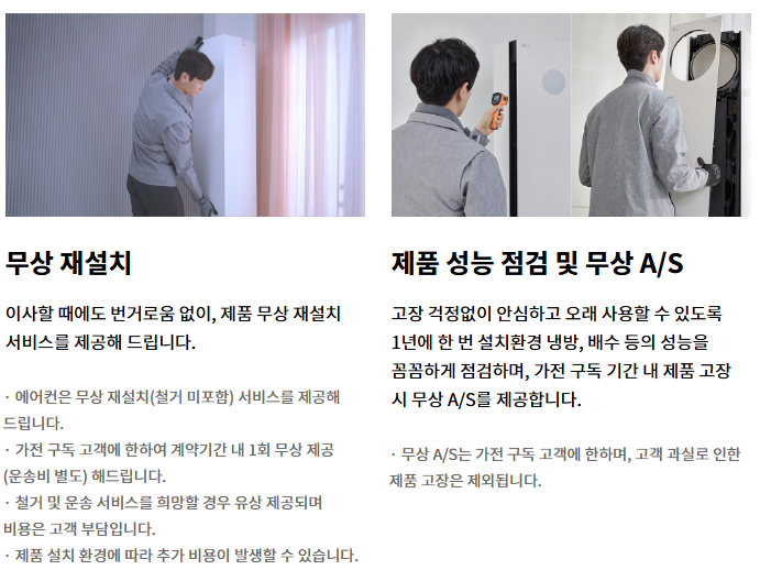 ✅ 가전 구독 고객 대상 계약 기간 내 1회 무상 제공 (운송비 별도)